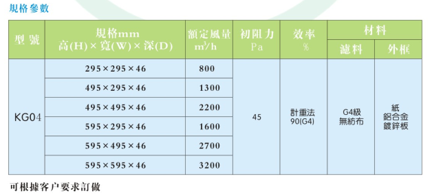 初效過濾器適用于空調(diào)系統(tǒng)的初級(jí)過濾,主要用于過濾 5μm 以上塵埃粒子。初效過濾器有板式、折疊式、袋式三種樣式,外框材料有紙框、鋁框、鍍鋅鐵框,過濾材料有無紡布、尼龍網(wǎng)、活性碳濾材、金屬孔網(wǎng)等,防護(hù)網(wǎng)有雙面噴塑鐵絲網(wǎng)和雙面鍍鋅鐵絲網(wǎng)。G系列粗效空氣過濾器分七個(gè)個(gè)品種,分別為:G1,G2,G3,G4,GN(尼龍網(wǎng)過濾器),GH(金屬網(wǎng)過濾器),GC(活性炭過濾器)
